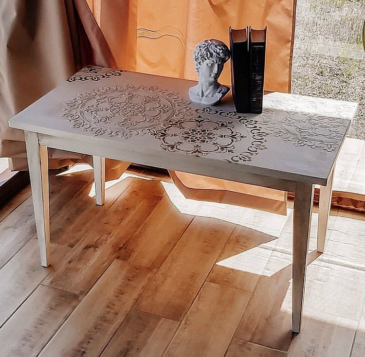 Если хочешь сразу шикарный эффект, надо купить этот трафарет, что я и сделала! Декорировала столик, получилось идеально! Трафарет достаточно плотный, очень хорошо лежит на поверхности, я даже ничем не фиксировала. А потом я использовала этот трафарет для декорирования тумбочки. Получилось тоже прекрасно. Теперь мой любимый трафарет! И меня совершенно покоряете упаковка - не просто в конверте или пакете, а специальная папка из оргалита для хранения.